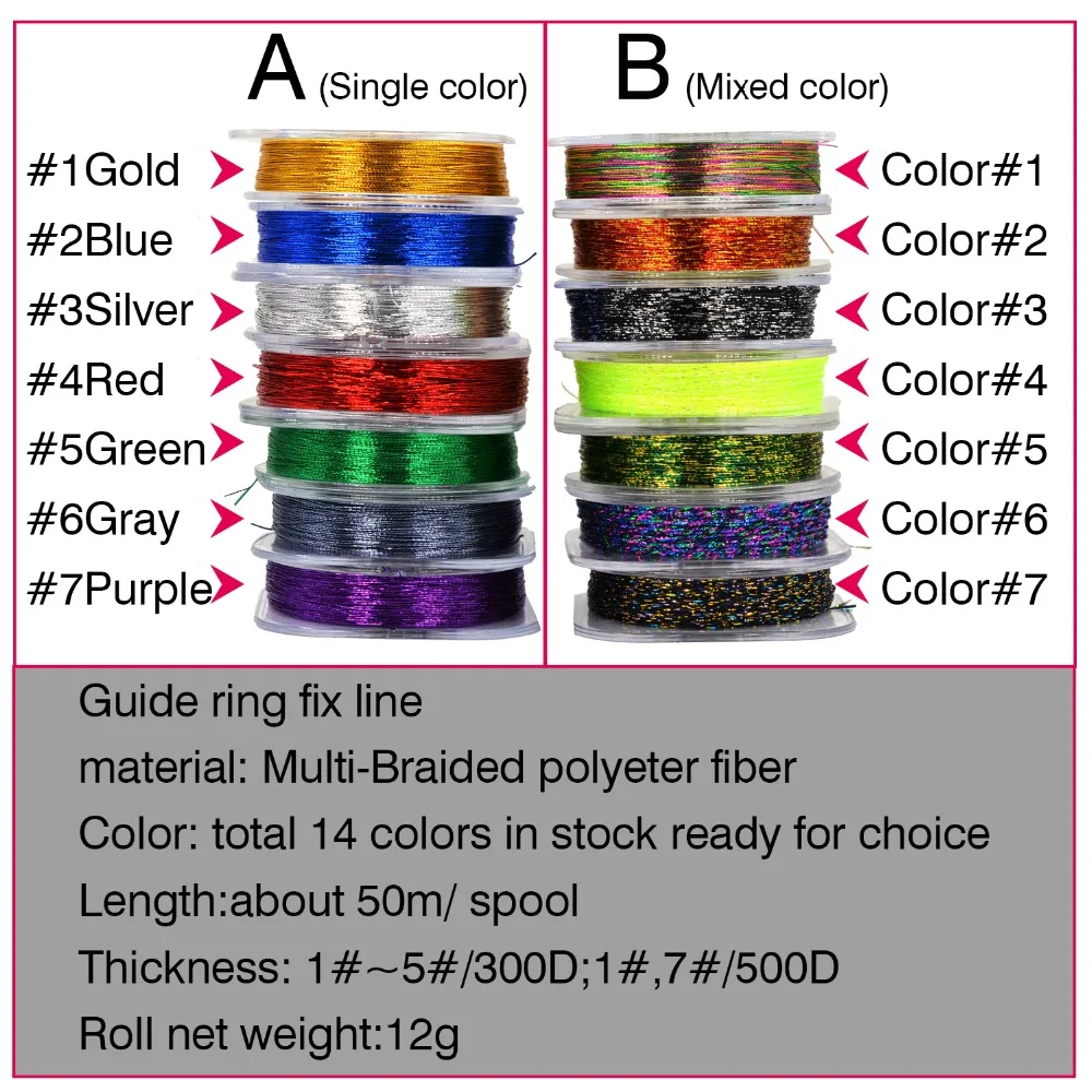 Luxury MNFT 7Pcs Rod Building Wrapping Thread Fishing DIY Fishing Guide Ring Eyelet Fixing Threads 14 Colo